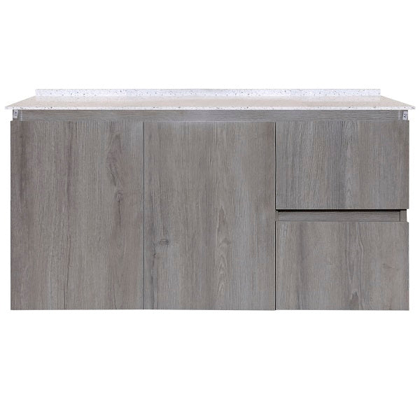 Mueble de Baño a Muro con Cubierta de Cuarzo Blanco Galaxys 100cm